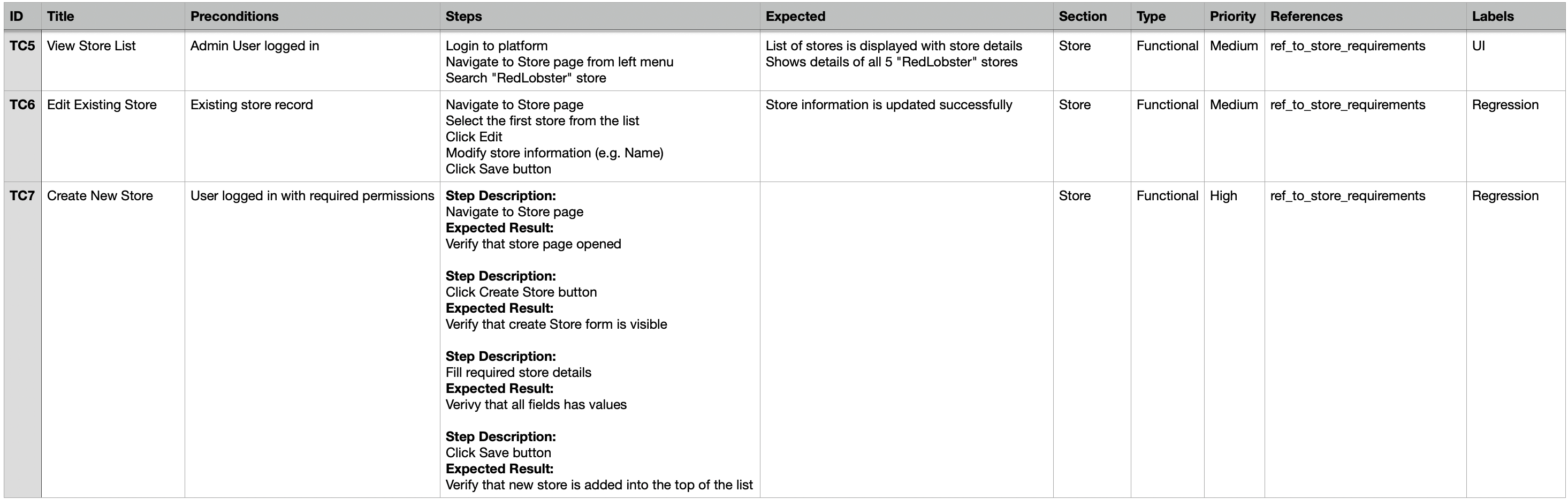 Use a “Expected” column to define the corresponding validation steps or expected results for each step.